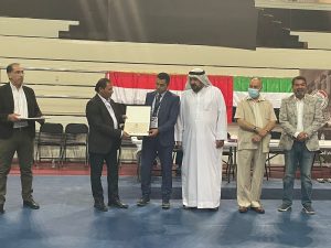وفي الختام قامت إدارة النادي المصري وسعادة أحمد سودين وكبار الشخصيات بتكريم المحاضرين والمدربين واللاعبين المشاركين وتسليم شهادات التقدير لهم، وكذلك تقديم شهادة الشكر لنادي العين الرياضي لاستضافة الحدث، وفريق “عونك يا وطن التطوعي” لمساهمته في التنظيم واستقبال الحضور والمحافظة على الإجراءات الاحترازية والتباعد الجسدي والصحة العامة.