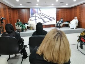 من اليمين محمد الإستاد و إحسان الخطيب و علي العبدان وسلمى المري خلال الندوة