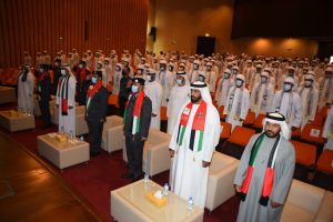 وتضمن الاحتفال الذي قدمه الإعلامي حميد المزيني عرضًا للفرقة الموسيقية العسكرية، تلته محاضرة مشتركة بعنوان ” الهوية الوطنية الإماراتية والولاء الوطني” قدمها المستشار الدكتور حميد البلوشي من الهيئة الاتحادية للهوية والإقامة، والعقيد أحمد الغفلي من أكاديمية سيف بن زايد للعلوم الشرطية والأمنية- إدارة التأهيل الشرطي، عرضا خلالها شرحًا لمفهوم الوطنية وعلاقتها بأخلاق والإنسانية وأهمية الولاء الوطني وقيم المواطنة والتربية والعلاقة والتكامل بين المواطن والوطن والحفاظ على المكتسبات وتنميتها.