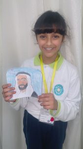 بمناسبة احتفالات الدولة بالعيد الوطني الـ 50 لدولتنا الحبيبة التي أرسى دعائمها المغفور له الشيخ زايد بن سلطان آل نهيان ،طيب الله ثراه، احتفلت مجموعة من الأطفال بهذه المناسبة، ومنهم الطفلة مهرة خالد يحيى المهيري وهي طالبة في الصف الخامس برسم صورة القائد ومؤسس الإمارات.