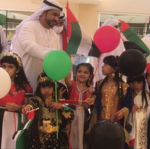 خلفان النقبي مع أطفال من المدرسة