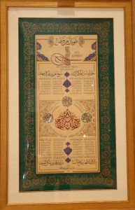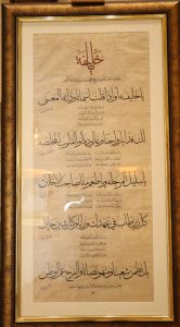 كما ضم المعرض لوحة لقصيدة” زايد بن سلطان أبو الجميع قيادة وشعباًا” للمرحوم سلطان بن علي العويس والتي قال فيها: