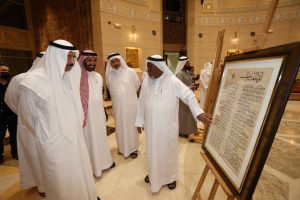 ضمن احتفالات دولة الإمارات بيوبيلها الذهبي في اليوم الوطني الخمسين، افتتح معالي محمد المر رئيس مجلس أمناء مكتبة محمد بن راشد معرضًا للخط وأمسية شعرية تحت عنوان “اتتحاد المحبة” بحضور بلال البدور رئيس مجلس إدارة الندوة ود. صلاح القاسم المدير الإداري ود. رفيعة غباش وصالحة عبيد ود. عبدالرزاق الفارس ونخبة من المهتمين وجمهور الذواقة.