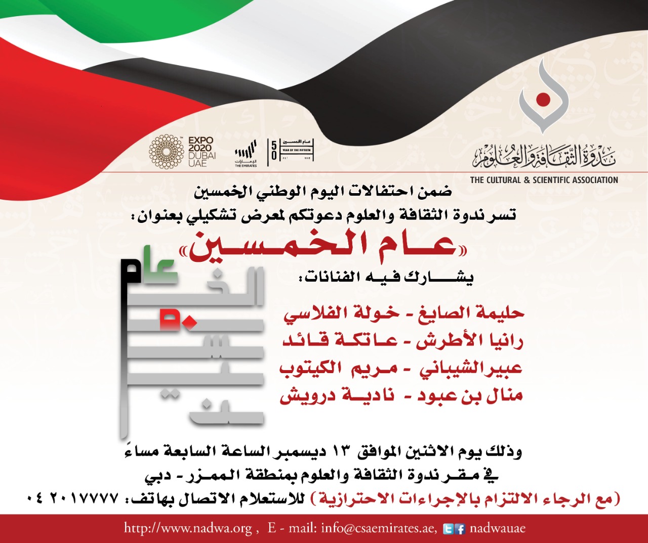 وأكد بلال البدور أن الندوة تسعى جاهدة في تبني وتشجيع الإبداعات الإماراتية كافة، وأن الفن التشكيلي الإماراتي من أهم الروافد المعرفية التي تثري المشهد والحراك الثقافي،