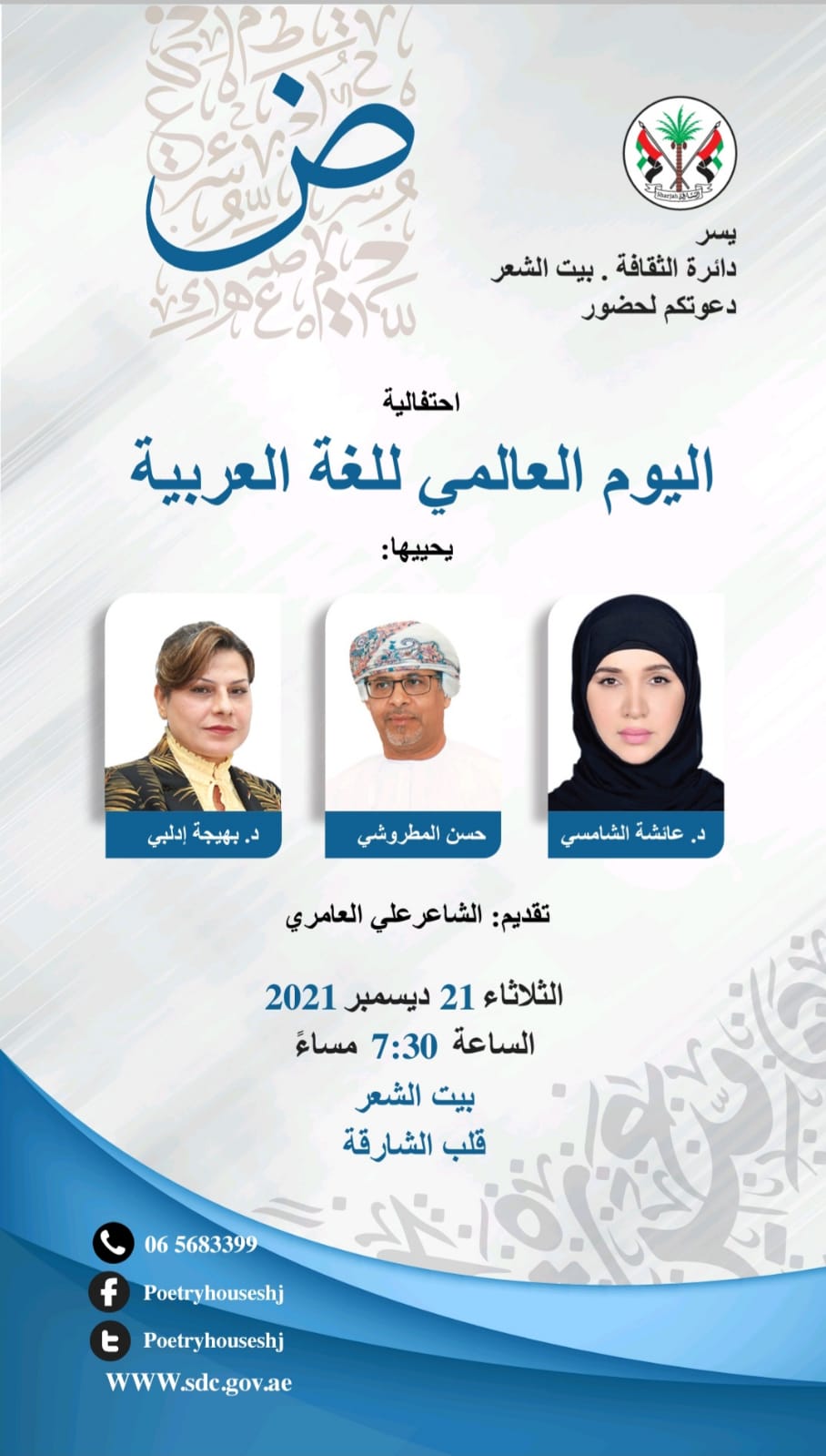 نظم بيت الشعر في الشارقة أمسية شعرية بمناسبة الاحتفال باليوم العالمي للغة العربية ضمن نشاطه “منتدى الثلاثاء”. أحيا الأمسية الشاعر حسن المطروشي من سلطنة عمان والشاعرتان د. عائشة الشامسي ود. بهيجة إدلبي ، وقدم لها الشاعر علي العامري.