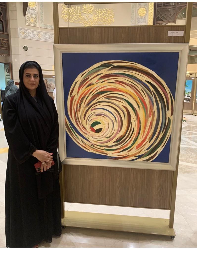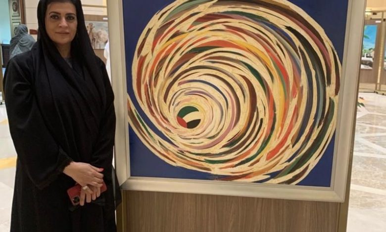 كما ان الفنانة راميه الأطرش لمساتها الفنية واضحة بشكل معبر عن حبها لحياة الطيور في لوحتها الصقر دليل القوة والعزيمة والإصرار
