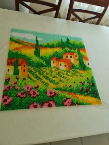 & الحقيقة أن أكثر ما يتطلب مني في عملي هذا الجلَد والأناة هو انتقاء درجات الألوان ، و إنجاز “تابلوه” صغير يستغرق منب 20 يومُا، بينما يستغرق إنجاز “تابلوه” كبير ثلاثة شهور.
