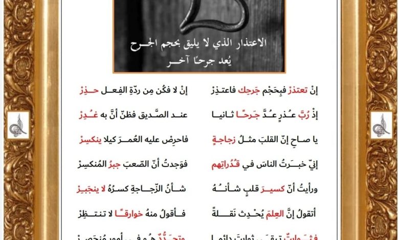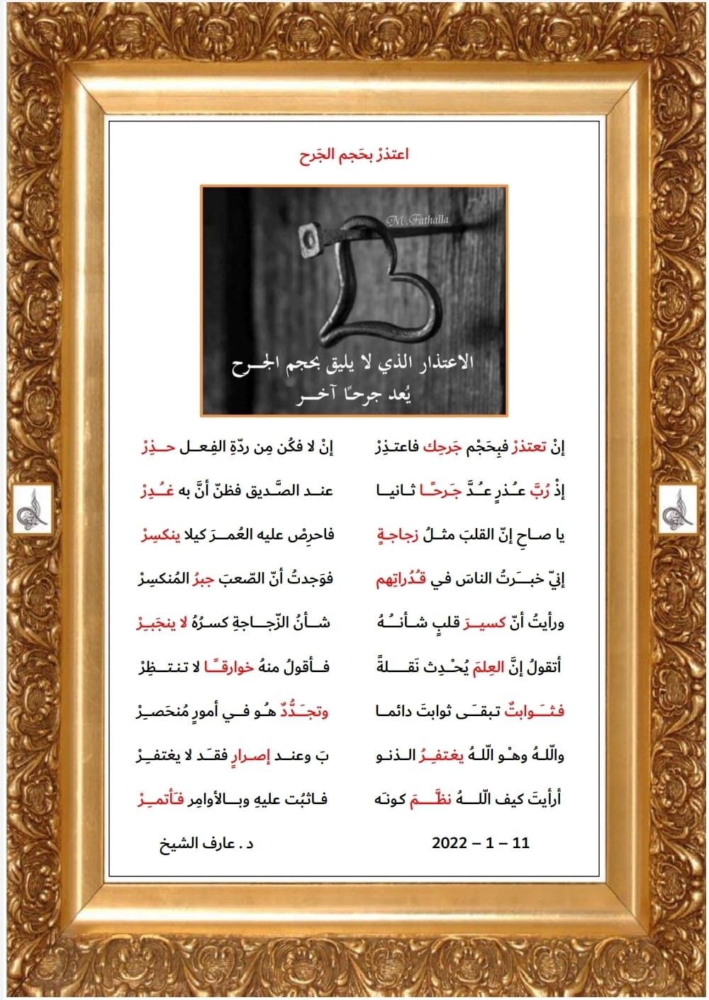 لقد استوقفتني جملتك الصغيره بحجمها والكبيره بمعانيها الاعتذار الذي لا يليق بحجم الجرح يعد جرحا اخر . دخلت بمكونات الجمله واخذني احساسي وتفكيري الي اماكن كثيره شكرا دكتور عارف كنت مبدعا وما زلت