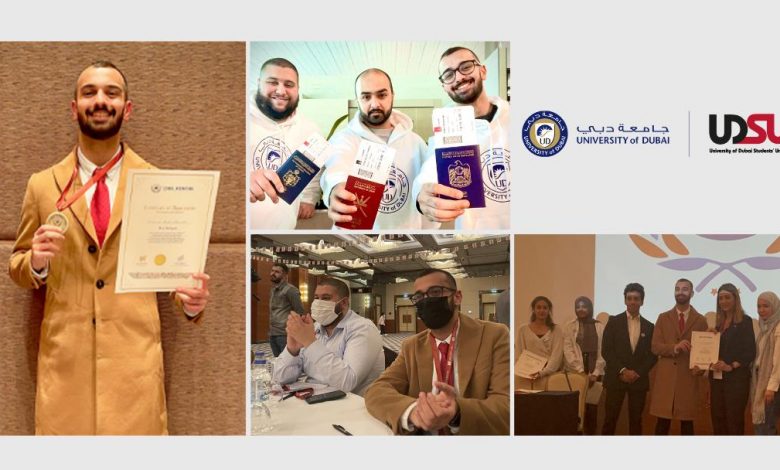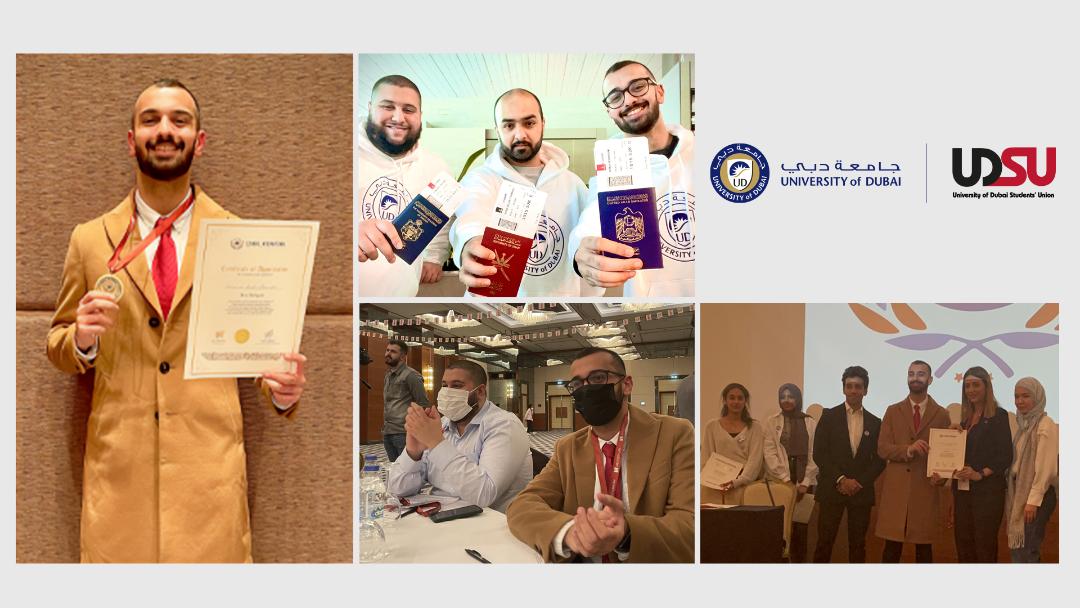 فاز نائب رئيس “نادي الحوار” في جامعة دبي الطالب محمد أحمد العوضي بجائزة أفضل مندوب ممثلاً لكل من جامعة دبي ودولة الإمارات خلال حضور مؤتمر نموذج الأمم المتحدة، الذي أقيم باسطنبول في تركيا.