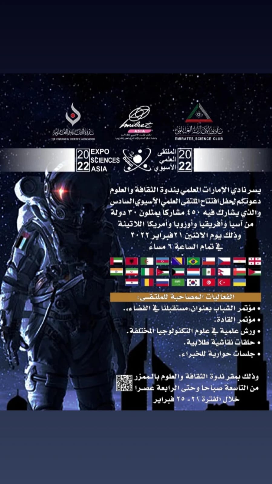 الملتقى العلمي الآسيوي في دولة الامارات يركز على الإبداع العلمي للعلماء الشباب الطامحين من كل أنحاء العالم .