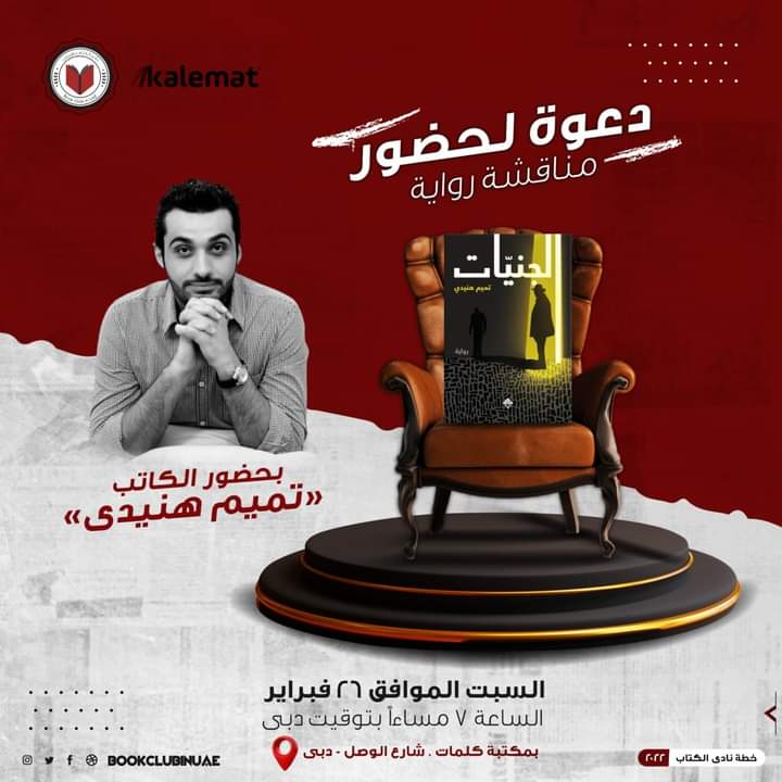 مناقشة رواية “الجنيات” للكاتب تميم هنيدي في مكتبة كلمات بدبي