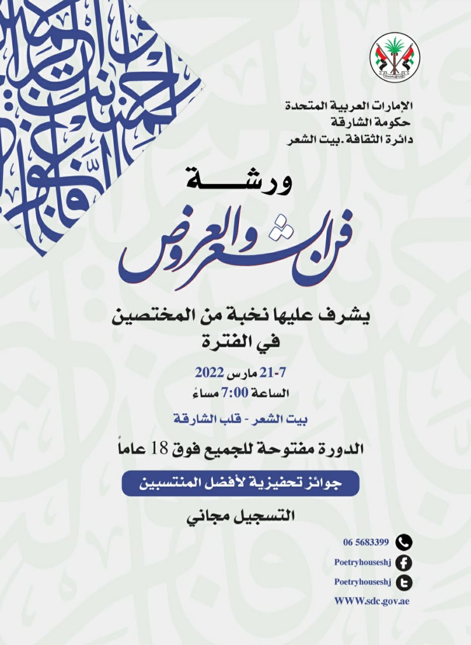 بدأت يوم الإثنين 7مارس 2022 “ورشة الشعر والعروض”