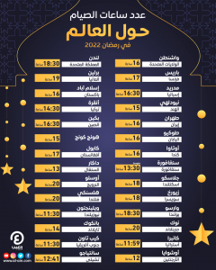الرئيسية/متفرقات/عدد ساعات صيام رمضان في دول العالم متفرقات عدد ساعات صيام رمضان في دول العالم Wael أرسل بريدا إلكترونيا 1 754 فيسبوك تويتر واتساب مشاركة عبر البريد Wael أرسل بريدا إلكترونيا 1 754 فيسبوك تويتر واتساب مشاركة عبر البريد اظهر المزيد شاركها فيسبوك تويتر واتساب مشاركة عبر البريد طباعة