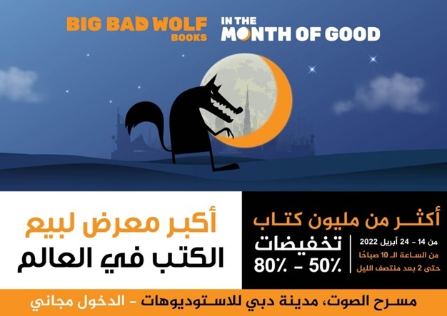 بشراكة استراتيجية مع هيئة الثقافة والفنون في دبي “دبي للثقافة” تنظم “لبيج باد وولف” معرض الكتاب الذي يقدم أكبر تخفيضات للكتب في العالم، ويعود من جديد إلى دبي في دورته الرابعة ومقره مدينة دبي للاستوديوهات، ويضم حوالي مليون كتاب، و يعود لافتتاح أبوابه في شهر رمضان المبارك بعد توقف دام عامين بسبب الجائحة.