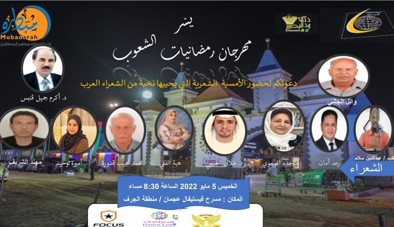 مهرجان وامسية تضم كوكبة منتقاة و رائعة من الشعراء لهم صيت وتاريخ يشهد لهم ….
