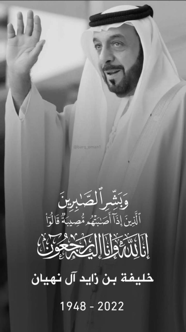 أوردت النبأ وكالة أنباء الإمارات (وام) وجاء فيه: “تنعى وزارة شؤون الرئاسة إلى شعب دولة الإمارات والأمتين العربية والإسلامية والعالم أجمع قائد الوطن وراعي مسيرته صاحب السمو الشيخ خليفة بن زايد آل نهيان رئيس الدولة الذي انتقل إلى جوار ربه راضياً مرضياً اليوم الجمعة 13 مايو”، وأضافت: “تعلن وزارة شؤون الرئاسة الحداد الرسمي وتنكيس الأعلام على المغفور له صاحب السمو الشيخ خليفة بن زايد آل نهيان رحمه الله مدة 40 يوماً اعتبارًا من اليوم، وتعطيل العمل في الوزارات والدوائر والمؤسسات الاتحادية والمحلية والقطاع الخاص 3 أيام اعتباراً من السبت على أن يستأنف الدوام الرسمي الثلاثاء 17 مايو “