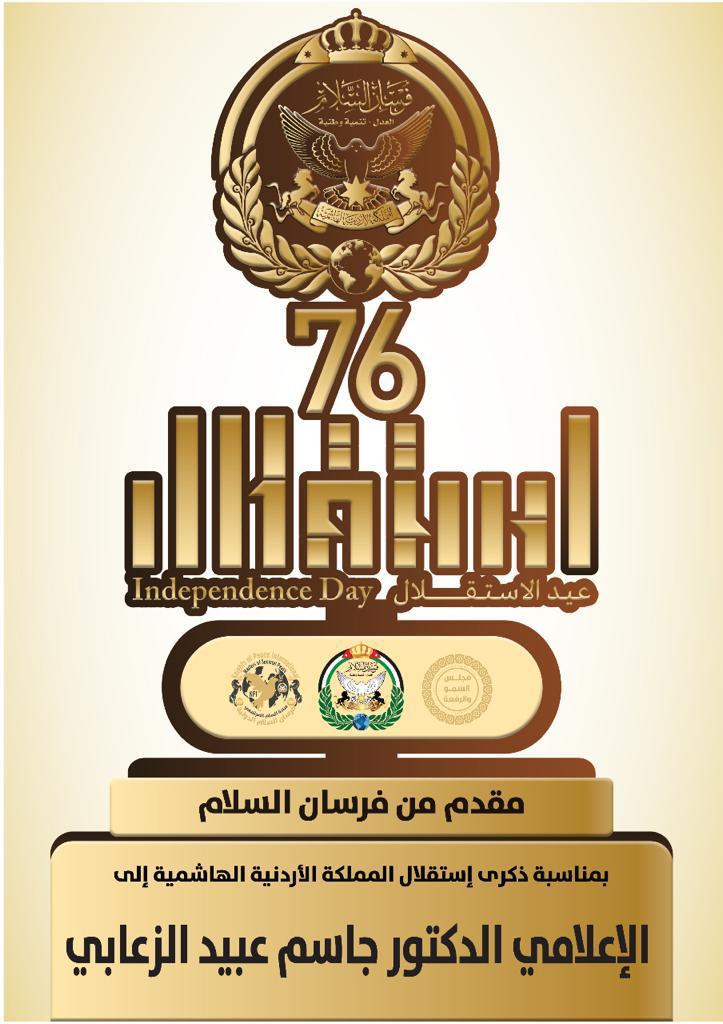 نال المستشار الدكتور جاسم عبيد الزعابي الكاتب والإعلامي الإماراتي درعاً تقديرية من الدكتور أمين أو حجلة رئيس “فرسان السلام” بمناسبة العيد 76 لاستقلال المملكة الأردنية الهاشمية.