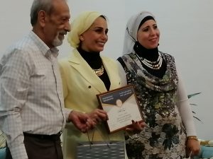 أحمد حيلوز يكرم رحاب صيدم وإلى يسارها سهام الوزيري