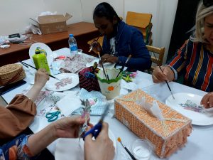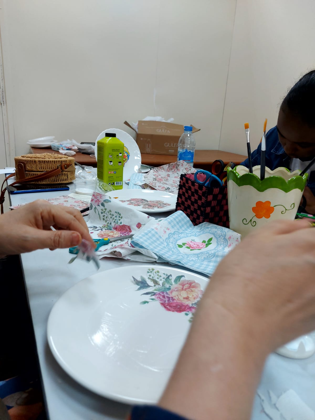 ضمن سلسلة ورشات "ديكوباج" بإشراف الفنانة سهام الوزيري كل يوم سبت، نظم النادي الثقافي العربي في الشارقة ورشة "ديكوباج" على الأطباق ، حيث كانت السبت الماضي على الأكواب ، وتكون السبت المقبل على الخشب. الورشة لأعضاء النادي ولغير الأعضاء و ضمت أطفالًا من الجنسين ورجالًا وسيدات، والورشات تكون لتزيين وتجديد أو تعتيق الأشياء لتكسبها قيمة وجمالية، وهناك مقترح لإنشاء مرسم حر للسيدات لتشجيع وصقل مواهبهن في غمرة انشغالهن بشؤون المنزل والتزامات الحياة.