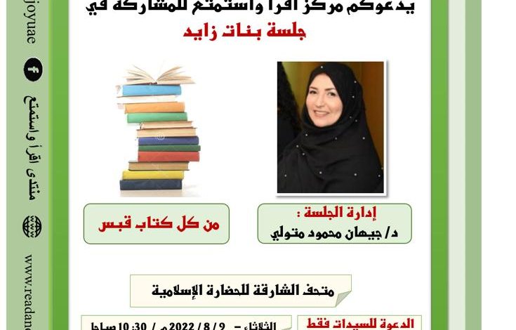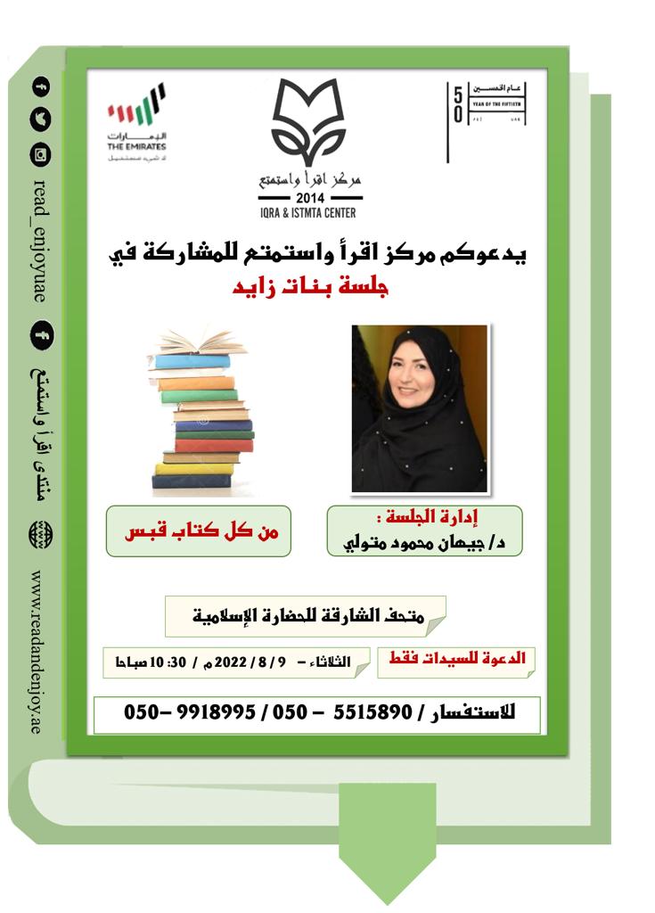 9 أغسطس 2022 ضمن “جلسة بنات زايد” بعنوان “من كل كتاب