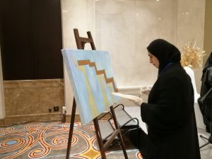 وكانت الفنانتان التشكيليتان آمنة الفلاسي و منى عبد القادر العلي عضوا جمعية الإمارات للفنون التشكيلية منهمكتين في إضفاء البهجة على أجواء الأمسية بألوانهما وخطوطهما المتناغمة عبر رسم فوري اتسم بالتمكن والاحترافية.