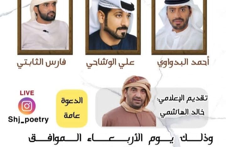 أحيا الشعراء أحمد البداوي وعلي الوشاحي وفارس الثابتي أمسية من الشعر الشعبي في مجلس الحيرة الأدبي في الشارقة الأربعاء 7 سبتمبر 2022 قدم لها الإعلامي الشاعر خالد الهاشمي تقديمًا لافتًا حاز إعجاب الحضور.