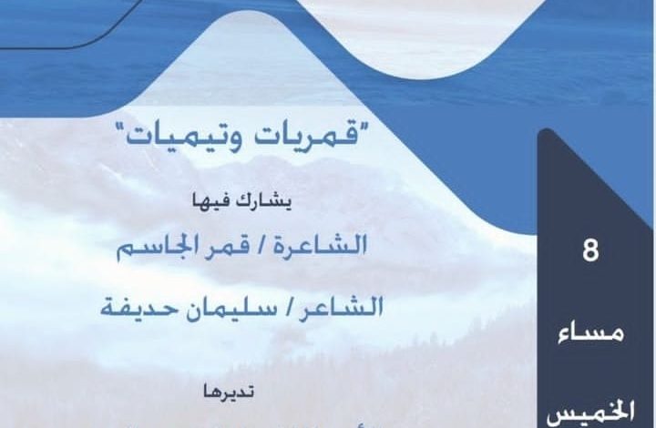 نظم النادي الثقافي العربي في الشارقة الخميس 8 سبتمبر 2022 أمسية من الشعر المحكي اتسمت بالإمتاع والجمال أحياها الشاعر سليمان حذيفة والشاعرة قمر جاسم وقدمت لها الأستاذة مارية محي الدين، حيث رحبت بالشاعر والشاعرة مشيعة أجواء مزجت بين الجدية وخفة الظل، وذلك بعد مداخلة حول الشعر المحكي وتاريخه جاء فيها: