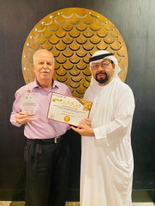 المستشار الإعلامي الدكتور جاسم عبيد الزعابي مدير ومؤسس “قناة أهل الدار” كرَّم الإعلامي وائل الجشي رئيس تحرير “البعد المفتوح” بصفته أحد الرواد المتعاونين مع قناة “أهل الدار”.