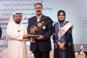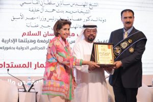 وبحضور الشيخة مريم بنت حمد آل خليفة عضو مجلس السمو والرفعة في “فرسان السلام” تسلم المستشار الدكتور الزعابي من الدكتور أبو حجلة شهادة شكر وتقدير ودرع “فارس السلم المجتمعي” تقديراً لمشاركته الفاعلة وجهوده البناءة في إثراء المؤتمر الدولي المرأة والريادة والاستثمار المستدام، كما تسلم منه شهادة وبطاقة عضوية المجلس الإعلامي الدولي، حيث أشاد الدكتور أبوحجلة بما”عرف عنه وتميز به المستشار الدكتور الزعابي من الأدب والأخلاق والعلم والمعرفة والحنكة”، متمنياً له المزيد من التقدم والنجاح والرفعة .