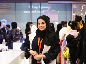سارة الحوسني متطوعة في معرض الشارقة الدولي للكتاب – 41 من الوجوه النسائية التي كانت ناشطة في المعرض. شاركت في عملية تنظيم صعود المتسابقين إلى منصة برنامج “تحدي” الذي كان يجذب الحضور للمشاركة فيه، وهو عبارة عن أسئلة في المعلومات العامة يفوز من تكون إجابته صحيحة.