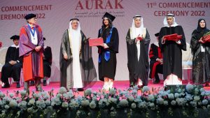احتفلت الجامعة الأميركية في رأس الخيمة بتخريج 111 من الطلاب الإماراتيين و102 من الطلاب من 23 جنسية مختلفة، الخريجون منتسبون إلى عدد من البرامج الدراسية المهمة والمستقبلية التي تتضمن التكنولوجيا الحيوية والقيادة التربوية، وذلك بحضور السيد محمد عمران الشامسي، رئيس مجلس أمناء الجامعة وحسن حمدان العلكيم رئيس “الجامعة الأميركية في رأس الخيمة” والسيدة ميغان جريجونيس القنصل العام للولايات المتحدة، والبروفيسور ستيفن سي ويلهايت نائب الرئيس الأول للشؤون الأكاديمية ورئيس الجامعة.