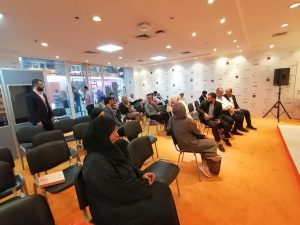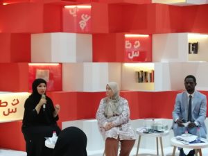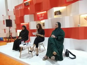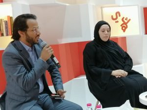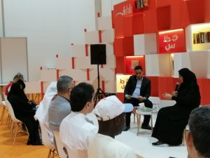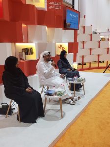 التأليف وثانيًا الطباعة التي تحول المنتج الثقافي إلى متعددة ، وثالثًا مرحلة التاريخ ، وهذه المراحل تتكامل لتشكل ما يعرف ، صناعة النشر،  و ندوة حول  الصحة النفسية للأسرة السعيدة قدمتها د. وفاء محمد مصطفى وأدارها د. يوسف محمد شراب ، ومما جاء فيها:  ” ترتبط الأسرة والصحة النفسية بعلاقة وثيقة فإن صلحت الأسرة صلح المجتمع كله، والعكس صحيح؛ فالصحة النفسية تمثل الصحة البدنية، والنفسية، والفكرية، والثقافية، والاجتماعية للفرد، التي تتضمن التوافق مع النفس، والتكيف مع البيئة الخارجية للفرد، كما تمثل الارتياح النفسي الذي يمنح لصاحبه القدرة على مواجهة الضغوط والتحديات التي تواجهه بقلب ثابت شجاع، والقيام بواجباته نحو أسرته خير قيام، وأداء عمله بإتقان، بالإضافة إلى المساهمة بفعالية في المجتمع بنضج واتزان وتحمل المسؤولية، والإقبال على الحياة بحب وإيجابية ديدنه التعلم والتحسين المستمر  مدى الحياة”، وندوة “مصادر المعرفة في العصر الرقمي” بمشاركة د. محمد كامل جاد مدير مركز جمعة الماجد للثقافة والتراث ، ود. طه محمد نور و د. أحسن بابوري وإدارة الشاعرة شيخة المطيري، وأمسية شعرية أحيتها الشاعرة ساجدة الموسوي والشاعر محمود صالح أدارها الشاعر وسام شيا، وندوة “مستقبل تأليف وقراءة الروايات” شارك فيها الروائي واسيني الأعرج والروائية نجوى بن شوان والروائي عبد الله النعيمي وأدارها الإعلامي غيث الموسى، وندوة “التفاعل المجتمعي الواعي” بمشاركة عبيد الغول و صابرين اليماحي عضوي المجلس الوطني الاتحادي وإدارة مريم الشرف، وندوة “شهادات حول الفن” بمشاركة الفنانة موزة المزروعي والفنان ياسر النيادي وإدارة الفنان د. حبيب غلوم، وندوة نظمتها جمعية الاجتماعيين حول “النشر العلمي المحكّم” قدمها د. محمد صلاح الدين مضوي وأدارتها د. إنعام يوسف محمد.