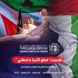 ضمن احتفالات دولة الإمارات العربية المتحدة بعيد الإتحاد 51 تنظم مؤسسة سلطان بن علي العويس الثقافيةعرضاً فنياً بعنوان” فوق الثريا يا وطني “لفرقة “أورنينا” العربية للأداء المسرحي وذلك في الساعة السابعة من مساء يوم الأربعاء 30 نوفمبر 2022 على مسرح المجمع الثقافي في أبو ظبي.