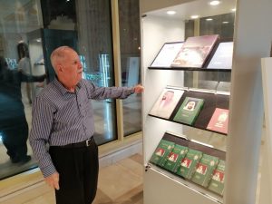 كذلك عرض المهندس رشاد بوخش مجموعة من الزجاجات السياحية التذكارية لبعض المعالم التاريخية للعديد من الدول.