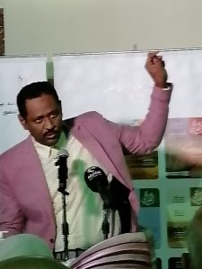 وفي هذه الأمسية اللائقة باللغة العربية أنشد الشاعر د. أسامة تاج السر مجموعة من قصائده التي استحسنها وتجاوب معها الحضور ومنها قصيدته “هويّتي” :