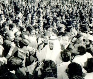 كانت يد زايد ألخير وقد فاض على أبناء شعبه مفتوحة لإخوة وأصدقاء في كل مكان إيمانًا منه بالوقفة الإنسانية مع كل من يحتاج. وفي اوائل يناير 1975 زار جمهورية الهند وكان في استقباله الرئيس فخر الدين علي أحمد ورئيسة الوزراء عهدذاك انديراغاندي، وكانت له معهما عدة اجتماعات واتفاقيات، وبعدها رافقناه إلى ضواحي مومباي بمروحية، حيث زار جامعة أليجار Aligarh الإسلامية في رحلة ٢٠ دقيقة من نيو دلهي، واستقبله الطلاب وهو يتنقل بين كلياتها بحفاوة بالغة وكأنهم يعرفونه حق المعرفة، ولاحظ رحمه الله من خلال الإجابة على سؤاله أن فيها ٧ كليات ما عدا البترول، فتبرع بإقامة كلية للصناعة البترولية التي بدأت نشاطها فعلًا بعد عام.