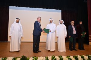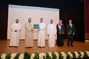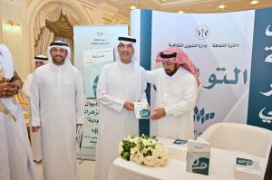 عبدالله الغويس يتسلم نسخته من حسن الزهراني