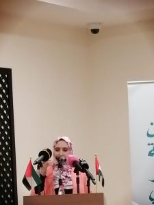 وأنشدت الشاعرة خديجة السعيدي قصائد حلقت بها في سماء الإبداع ووجهت تحية شعرية إلى الشارقة: