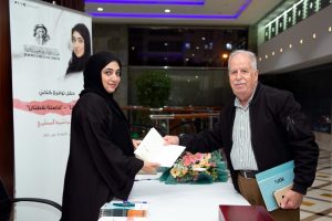 وفي ختام الأمسية شكر إبراهيم الهاشمي الشاعرة شيخة المطيري وقدم لها درع العويس التذكارية. بعدها وقعت المطيري عشرات النسخ من ديوانيّها “فاصلة نقطتان” الصادر عن دائرة الثقافة في الشارقة و “وأظن أنا” الصادر عن اتحاد كُتاب وأدباء الإمارات.