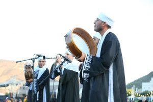 وبعد وصول المسيرة إلى موقع المهرجان، تابع الجمهور على «المسرح الأحمر» العرض الفولكلوري المصري «التنورة»، الذي يتميز مؤديه بلباسه المتعدد الألوان، وبمهاراته العالية في الحركة الإيقاعية الدائرية.