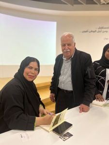 فاطمة المزروعي توقع نسخة من روايتها لوائل الجشي