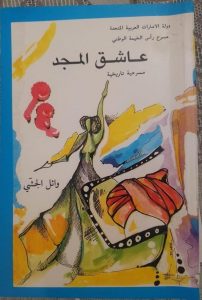“عاشق المجد” صدرت في تسعينيات القرن الماضي وبالتحديد عام 1994 وهي مسرحية تاريخية من تأليف وائل الجشي بما تتضمنه من أشعار، وتدور حول ابن خلدون هذا الفيلسوف الذي رأى العالم من مستويات كثيرة كلها موضوعية ذات بعد إنساني .إنه يراه متطلعًا إلى مكانة عالية ينظر إليها من بعد معرفي وتأملي، وينظر ابن خلدون إلى الواقع فيمحصه ويفنده حتى يجد الحلول وطرائق العيش في المجتمع. إنه إنسان عربي يرى الحلم العربي ويرى الشرق من بوابة الشمس. تظهر في المسرحية فتاة أصيلة اسمها “مجد” تحمل إلهامه إلى حدود السماء وأبعد، وتدفعه إلى الإقدام ومتابعة الطريق، وهي تطرح أمامه الإشكاليات تستمع إلى منطقه ورؤاه.