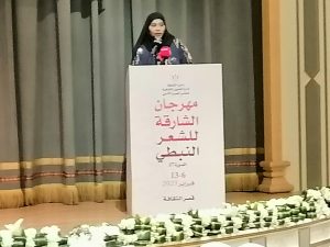 وألقت قصيدة بعنوان “غرقنا يا سمو العشق” وقصيدة “بنت العرب” التي حازت إعجاب الحضور.