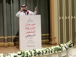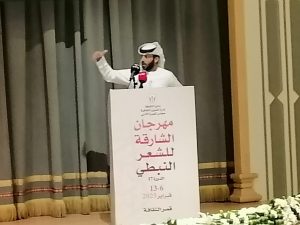 و في قصيدته ” شارقة الإبداع ” وقف عند إبداعات إمارة الشارقة وحاكمها واهتمامة بالثقافة والآداب والإبداع، ملقياً بعض أبياتها بأداء الشلة، ثم ألقى قصيدة وجدانية بعنوان ” ترف الطباعي”.