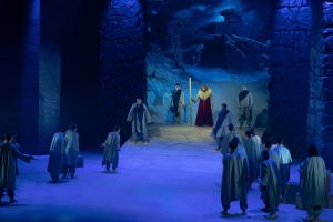 وتابع بعدها الحضور مسرحية “النمرود” من تأليف صاحب السمو الشيخ الدكتور سلطان بن محمد القاسمي، قام بأدائها طلبة السنة الثالثة بأكاديمية الشارقة للفنون الأدائية بإخراج الدكتور بيتر بارلو المدير التنفيذي للأكاديمية.
