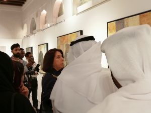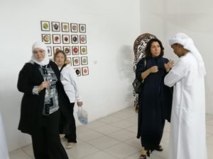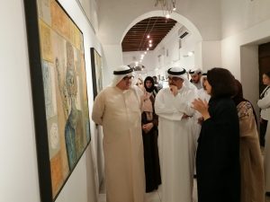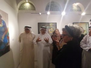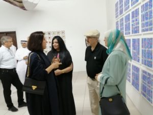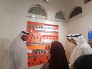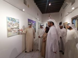 د. عبدالعزيز المسلم وسالم الجبيبي خلال الافتتاح وعلي العبدان في حديث عن إحدى اللوحات افتتح سعادة د. عبدالعزيز المسلم رئيس معهد الشارقة للتراث الأحد 12 مارس 3023 المعرض الفني "التراث والإبداع" في مقر جمعية الإمارات للفنون التشكيلية في الشارقة بحضور سالم الجبيبي رئيس الجمعية وجمع من الفنانين والمعنيين والمهتمين. تميز المعرض بتنوع الأساليب والمدارس وشارك فيه الفنانون: د. نجاة مكي و أحمد الأنصاري و محمد القصاب و عبدالرحمن زينل و حسين شريف و سلمى المري و د. محمد يوسف و د. كريمة الشوملي و علي العبدان و فاطمة لوتاه و سالم الجنيبي و خالد البنا وعزة القبيسي ومحمد الأستاذ.