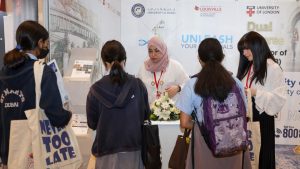 شهد جناح جامعة دبي إقبالًا كبيرًا من الطلبة للتعرف إلى برامجها وبنيتها التكنولوجية، حيث قدم فريق من إدارة القبول والتسجيل عروضًا تعريفية بهدف إرشاد الطلبة وتعريفهم ببرامج كليات الجامعة، ونظام الدراسة والبنية الأكاديمية والتكنولوجية، ومتطلبات القبول والتسجيل في مراحل البكالوريوس في الهندسة، وتقنية المعلومات، وفي إدارة الأعمال والماجستير في إدارة الأعمال، وفي علوم البيانات وفي القانون، والدكتوراه في إدارة الأعمال، إضافة للتعريف بالمنح الدراسية الجزئية والكاملة التي توفرها الجامعة.
