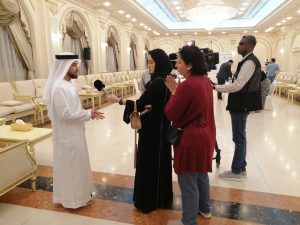 صالح الطنيجي خلال لقاء أجراه معه تلفزبون الشارقة على هامش المؤتمر الصحفي