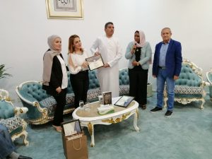 وفي ختام الأمسية كرّم محمد ولد سالم المشاركات يرافقه د. خليفة الشيمي والتقطت صورة تذكارية.