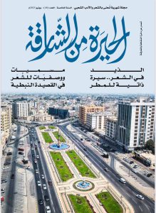 ويتواصل العدد في باب”شبابيك الذات” مع قراءة لتجربة الشاعر القطري راشد بن فلوة وأسلوبه ولغته الشعرية، لنطالع في باب”كنوز مضيئة” دلالات وجمال العبارة والاختزال في الأمثال الشعبيّة التي تضمّنتها شواهد وإبداعات من الشعر النبطي، وفي باب”تواصيف” نحن مع قراءة لفنّ”المطاول” الشعري واستعمالاته، كأحد فنون الشعر الشعبي في بلاد الشام. أمّا الشاعرة السعودية”تذكار الخثلان” فنتعرّف إلى تجربتها الأدبيّة وصورها الشعريّة من خلال عدد من قصائدها في باب”ضفاف نبطيّة”.